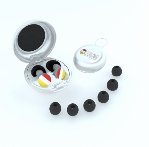 Rood wit geel hoesje met witte achtergrond, camera wordt goed beschermd door extra witte randen.