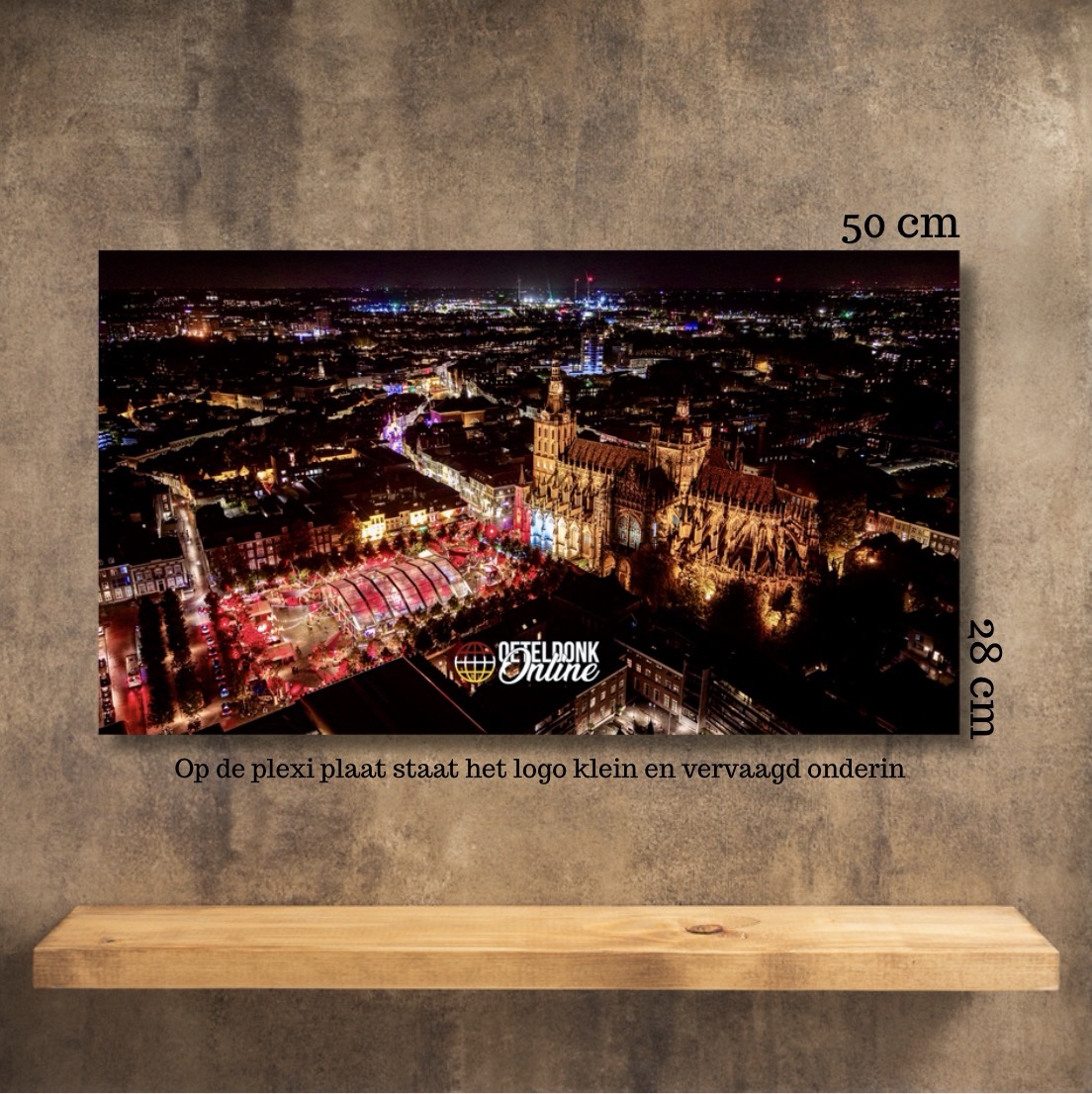 Afmeting 50 x 28cm, wordt geleverd met ophangsysteem (je hoeft niet te boren)